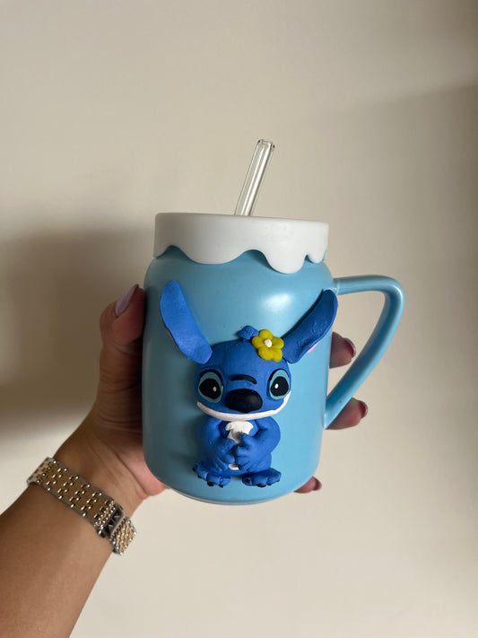 Stitch Ceramic Mug with 3D Cover & Spoon
