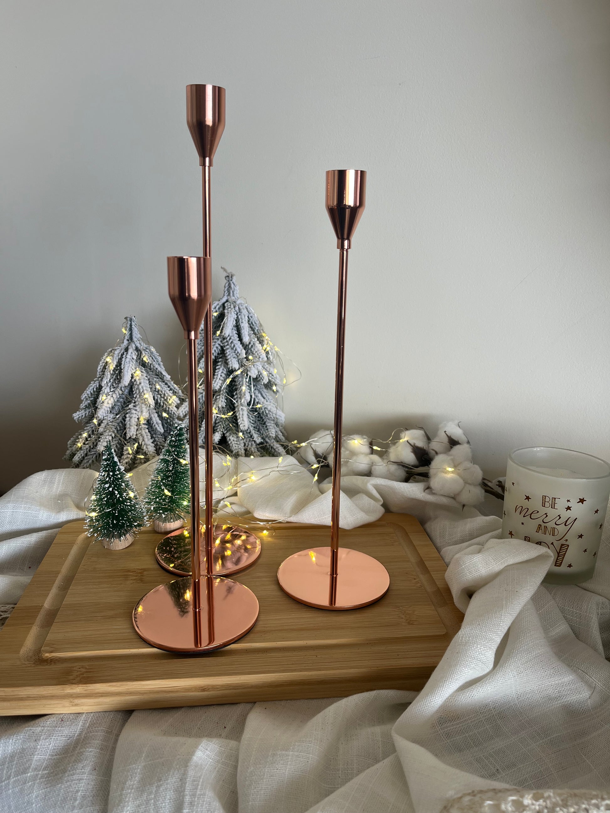 Elevate your space with this elegant set of three candle holders, perfect for adding warmth and sophistication to any décor.