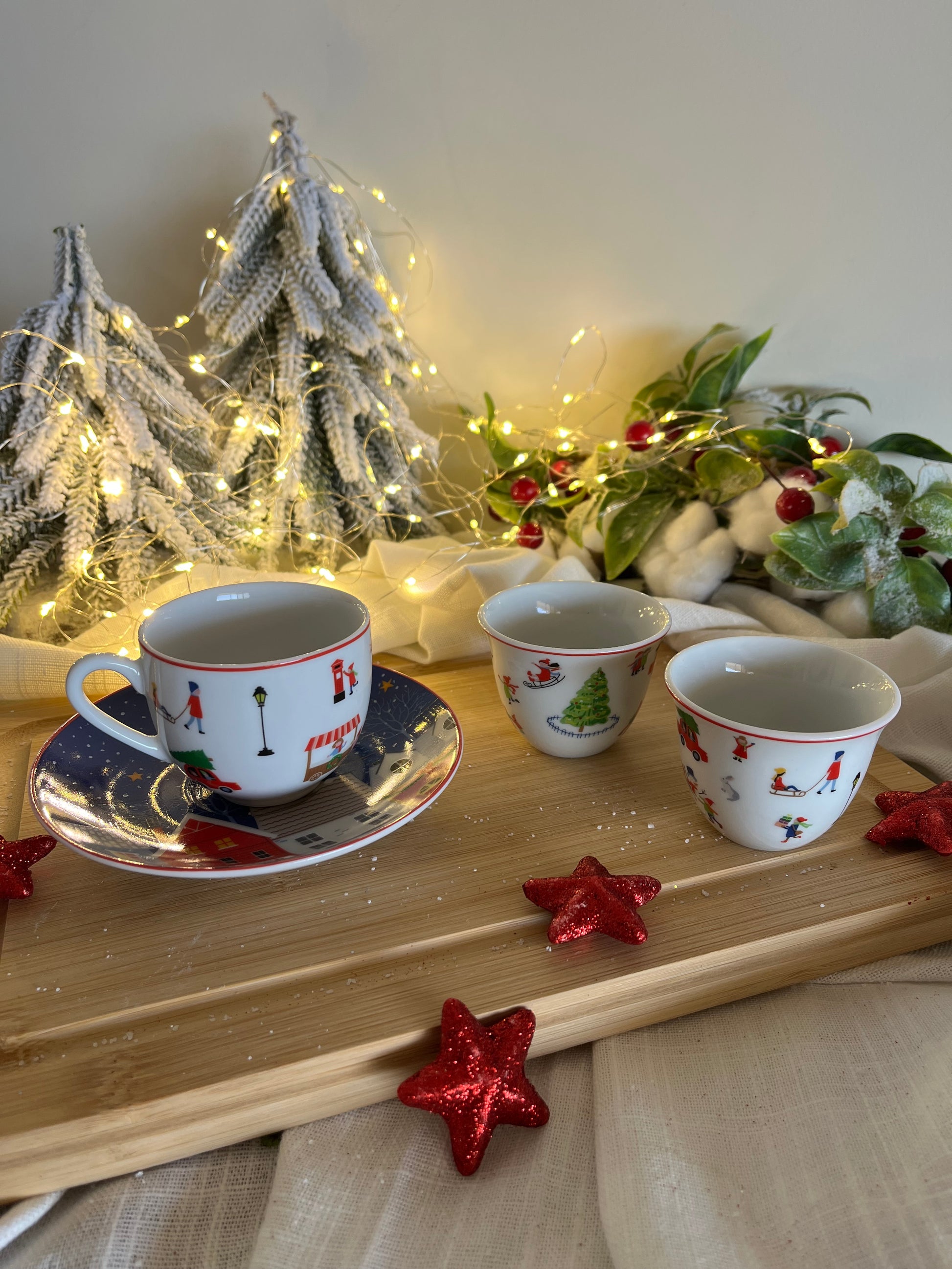 Christmas Coffee Cups & Saucers Set of 6