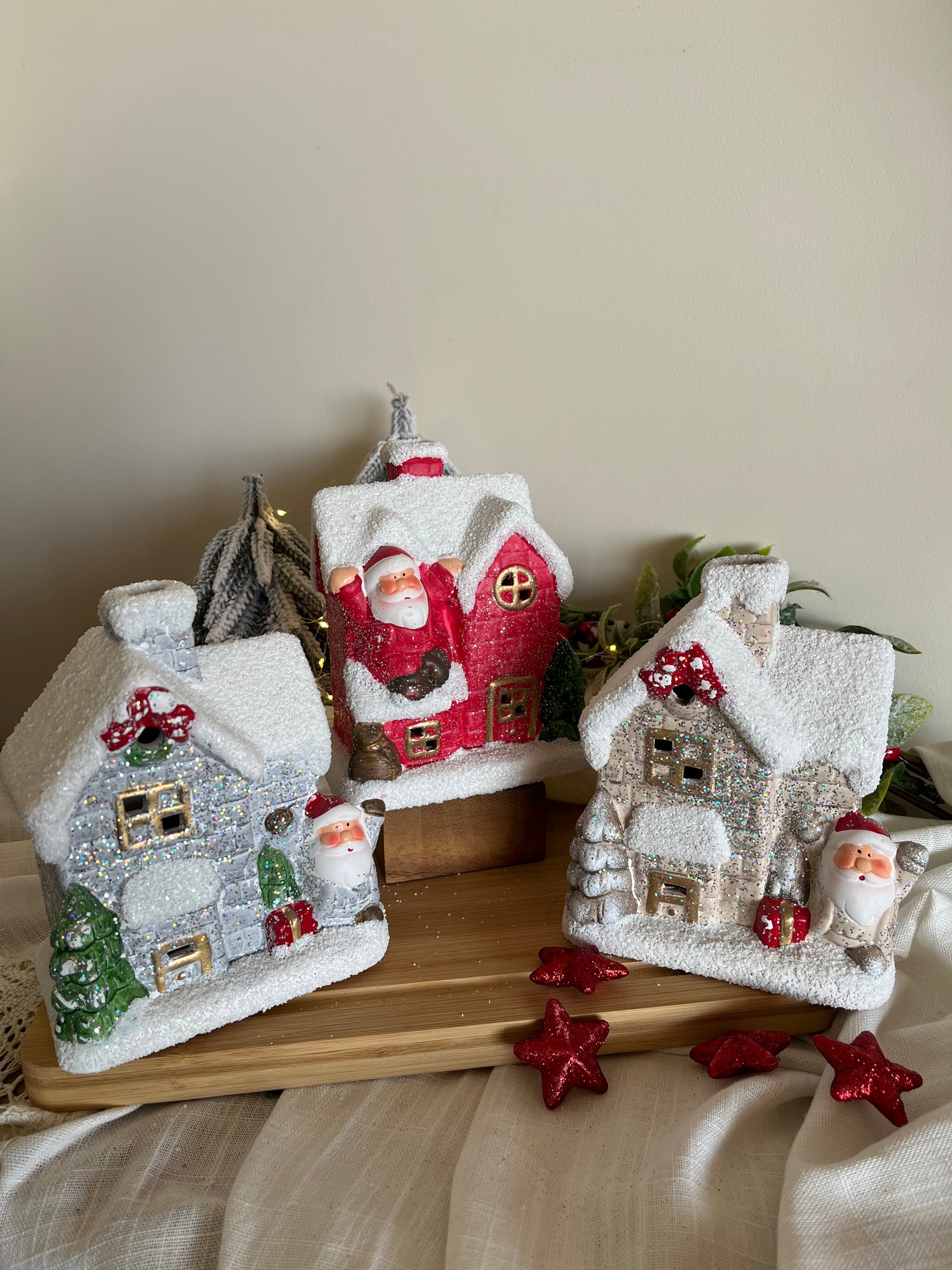 Introducing our luxurious Christmas Decorative Santa House. This shiny, light-up house boasts an elegant design with stunning red, silver, and champagne color options. Add a touch of sophistication to your holiday decor with this exclusive piece.