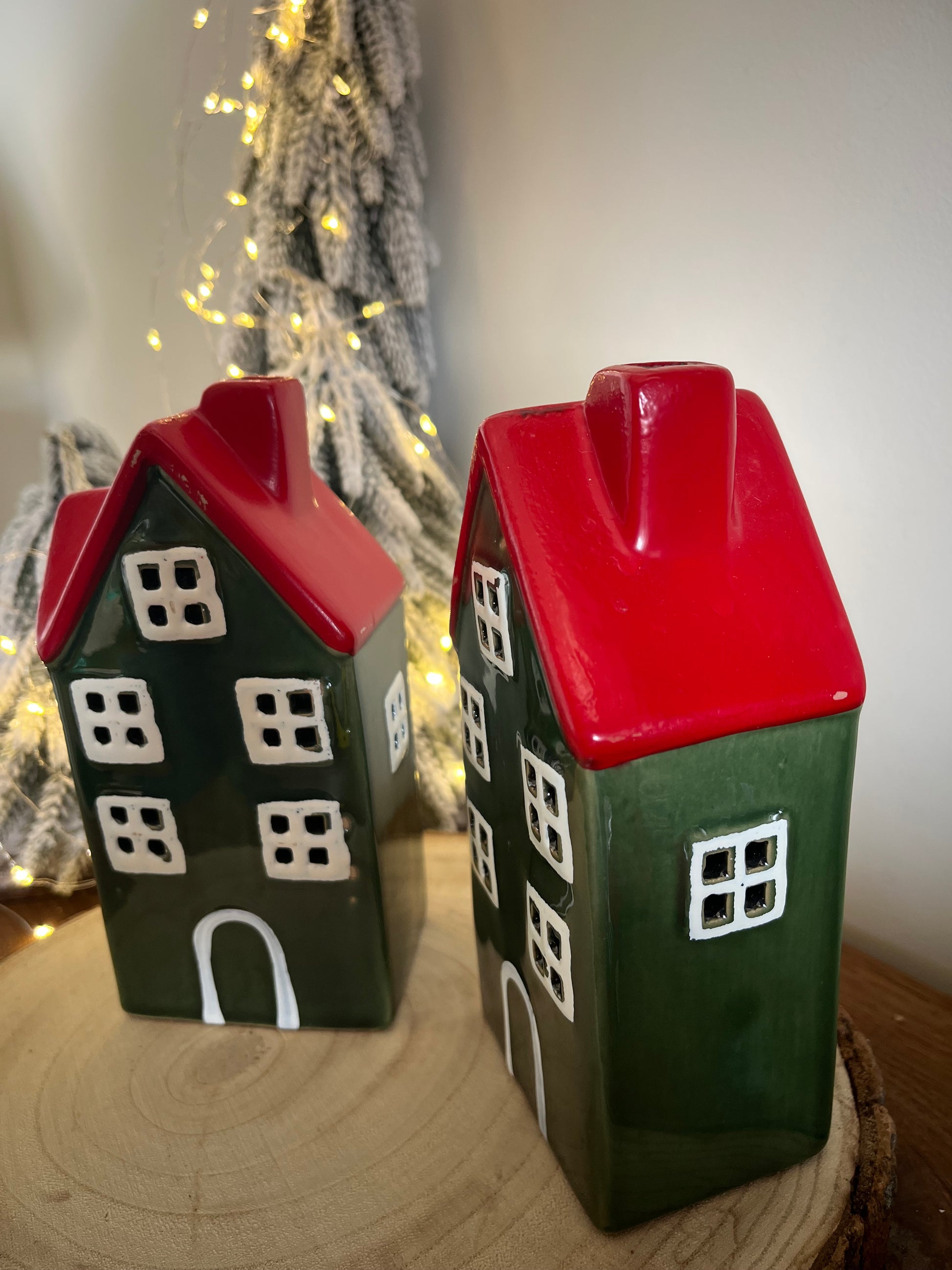 Transform your home into a winter wonderland with our Christmas House! This stunning decoration features Green & Red colors with low yellow lights, adding a festive touch to any space. Perfect for creating your own Christmas village or adding a touch of holiday cheer to your home.
