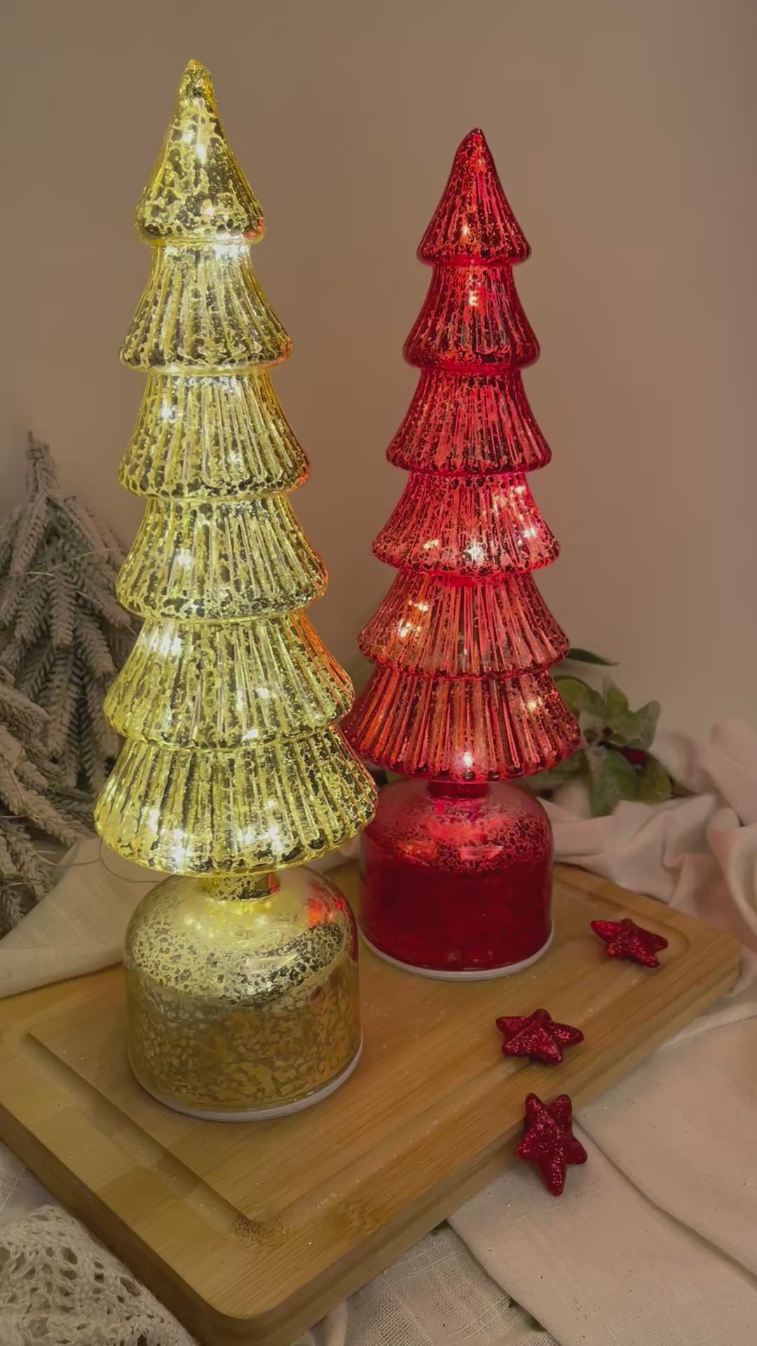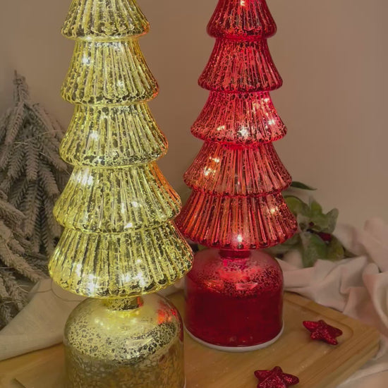 Transform your home into a winter wonderland with our Christmas Lighting & Turning Glass Tree. This 35cm glass tree not only adds a touch of class, but also lights up and turns for a mesmerizing display. Available in red or gold, it's the perfect addition to your holiday decor.