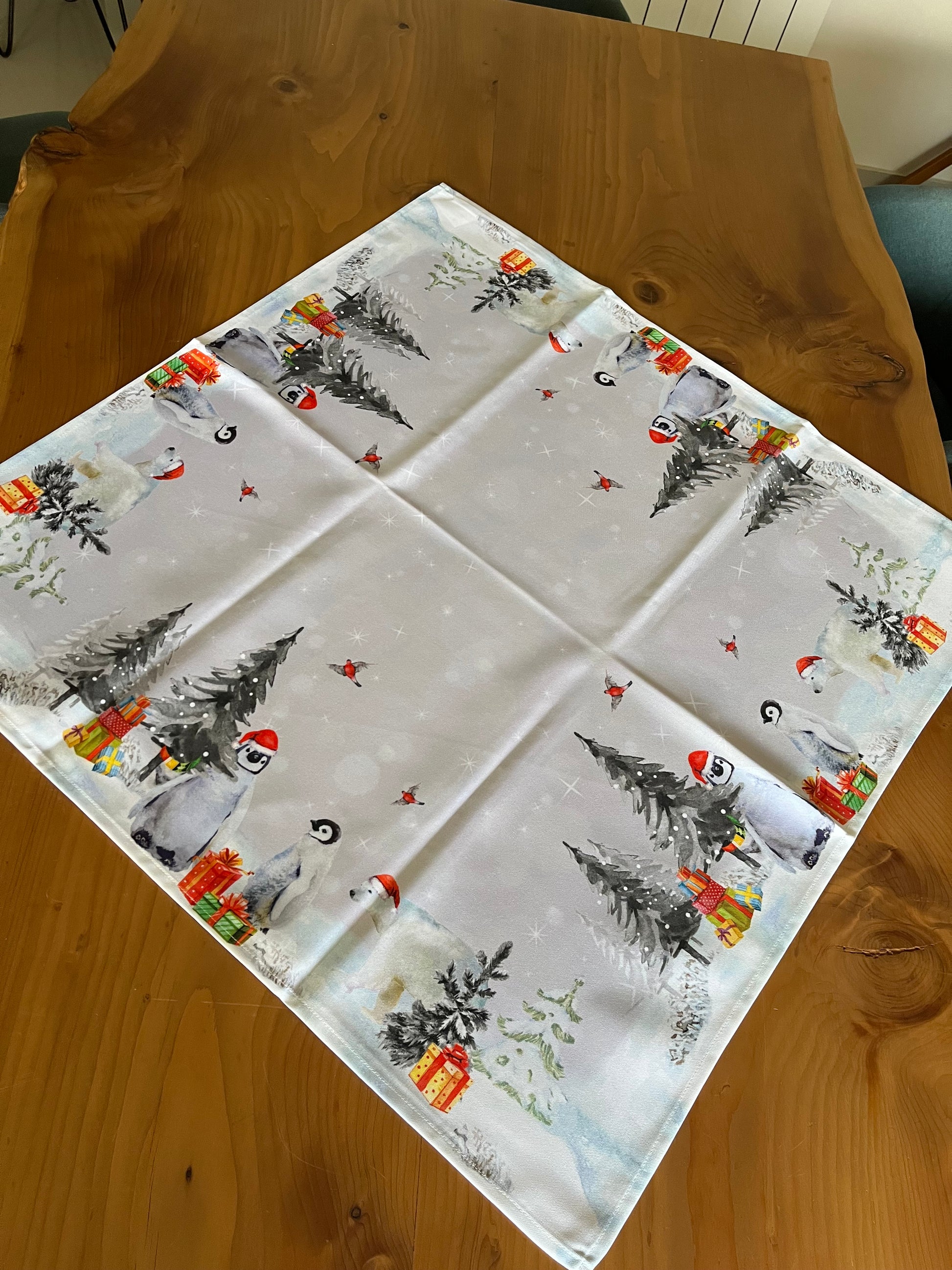 Add some festive cheer to your Christmas table with our Penguin on Ice Table Cloth!