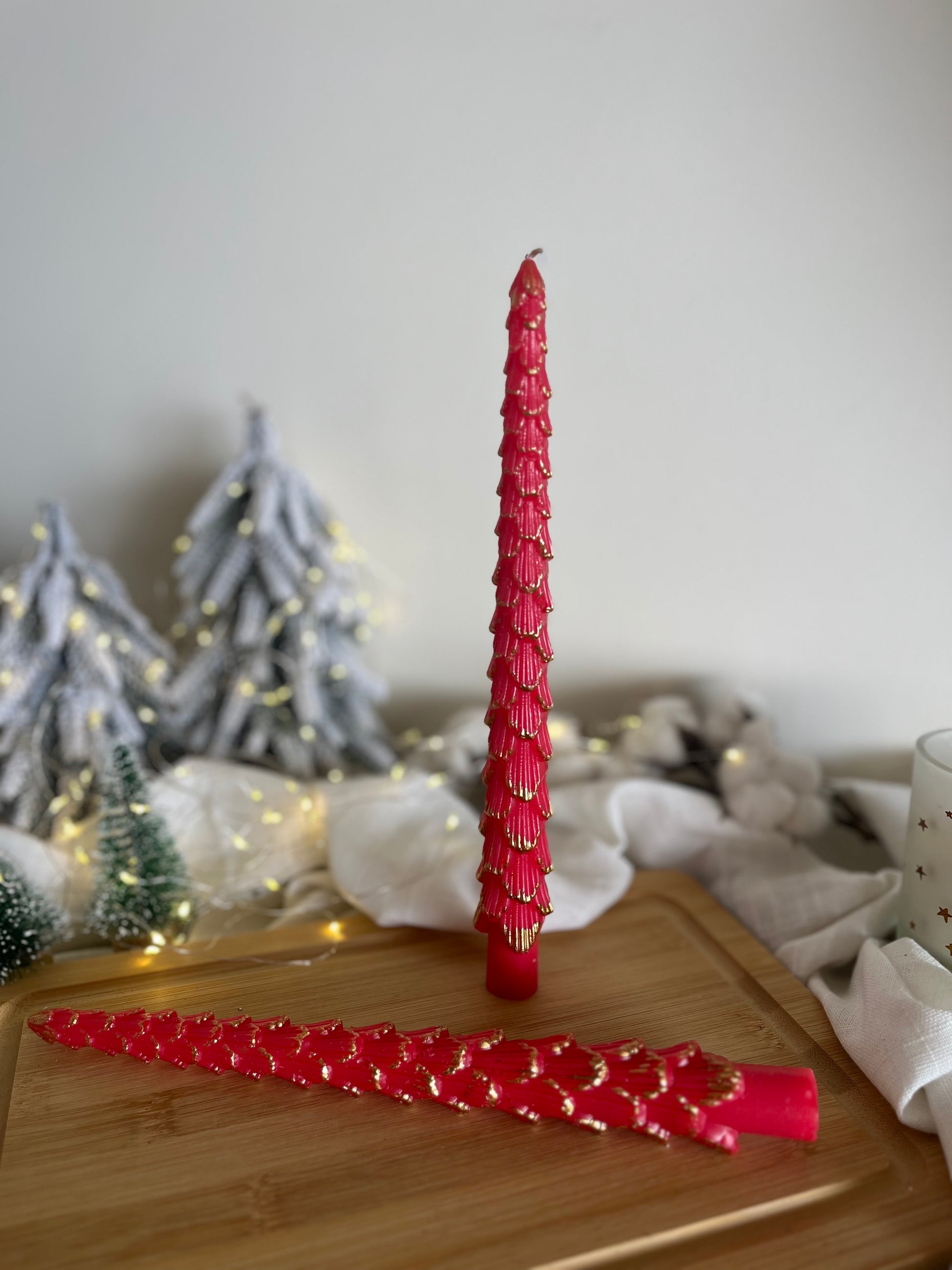 Indulge in luxury this holiday season with our Christmas Set of 2 Tree Candles. Crafted in the shape of a festive Christmas tree, these candles are 25cm long and come in 5 elegant colors to coordinate with your decor. Perfect for adding an elegant touch to any room, these candles are a must-have for the holiday season.