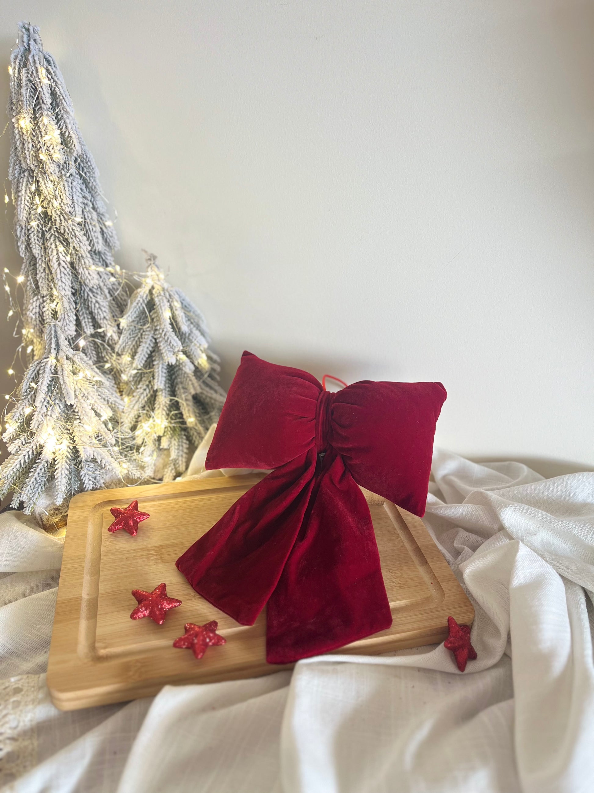Elevate your holiday decor with our trendy Christmas Velvet Burgundy Bows. These high-quality decorative bows come in various sizes and are filled with cotton for a luxurious 3D effect. Perfect for embellishing your Christmas tree, door, or even as elegant napkin rings. Add a touch of sophistication to your holiday festivities.