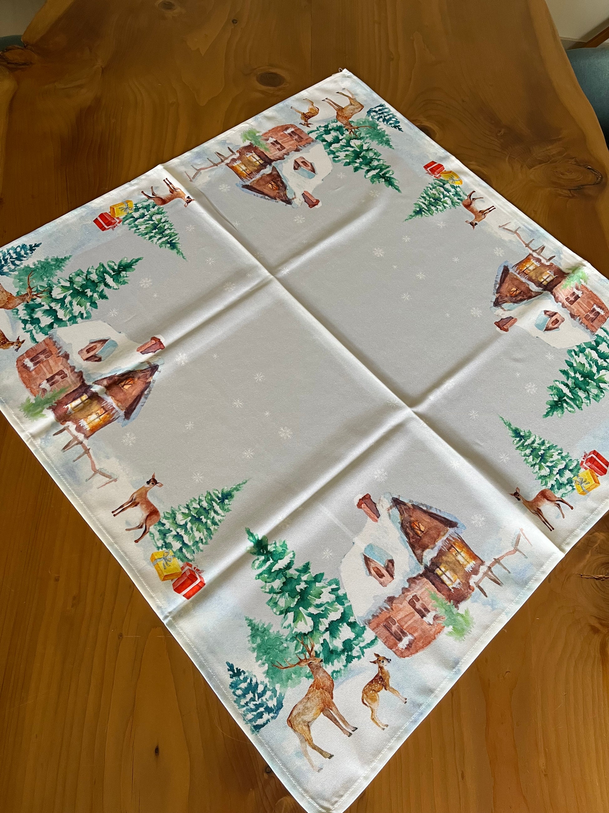 The square 84x84 cm size is perfect for any table setting, and the watercolor printed material adds a touch of charm. Spread the holiday spirit with this beautiful addition to your home decor.