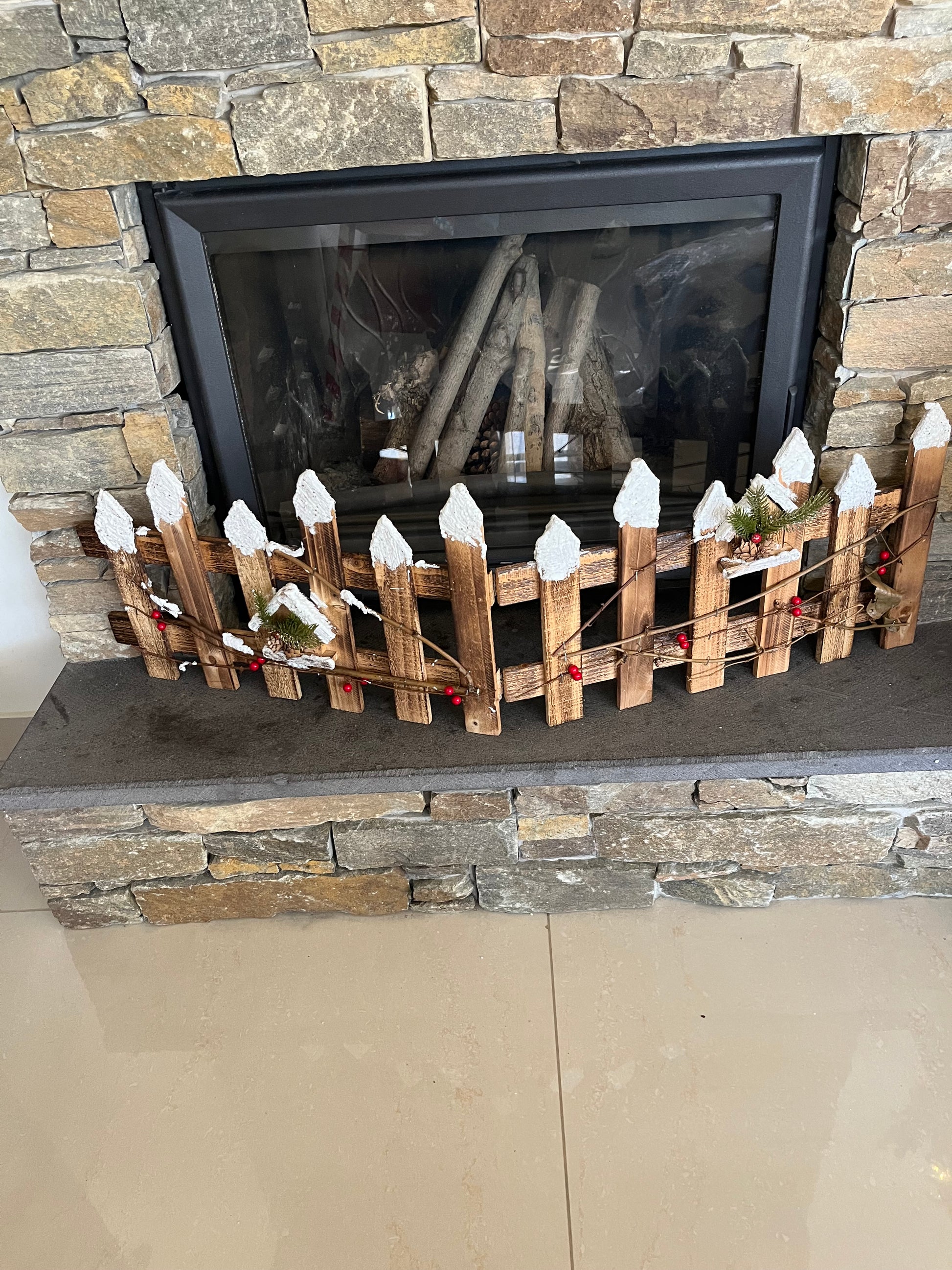 Create a cozy, festive atmosphere with our Christmas Wooden Fence. Made of sturdy wood with decorative details of small white houses and leaves, it's the perfect addition to any holiday display. Place it near your nativity set or chimney for a charming touch.
