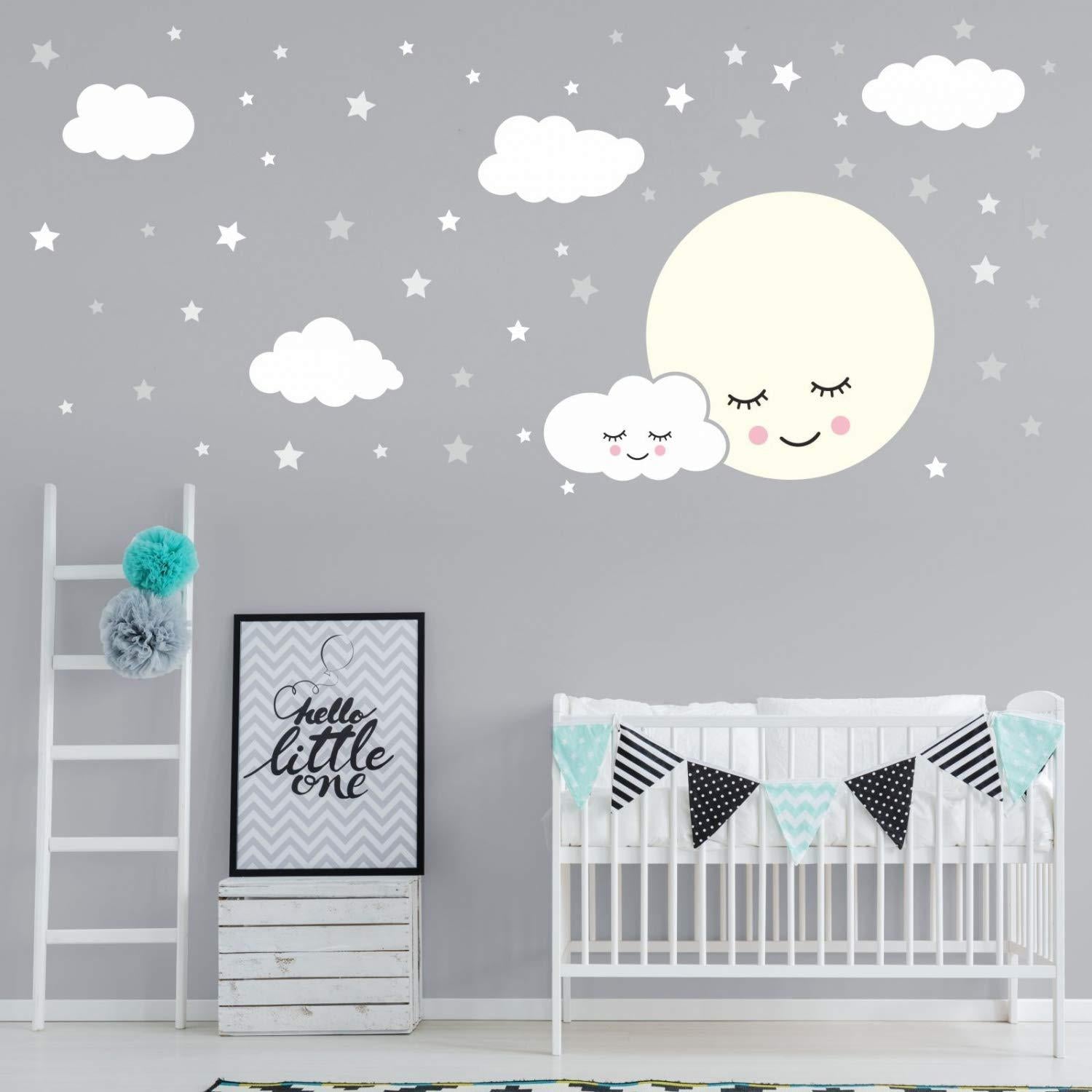 White Moon, Clouds and Stars Wall Decal (No Grey color)