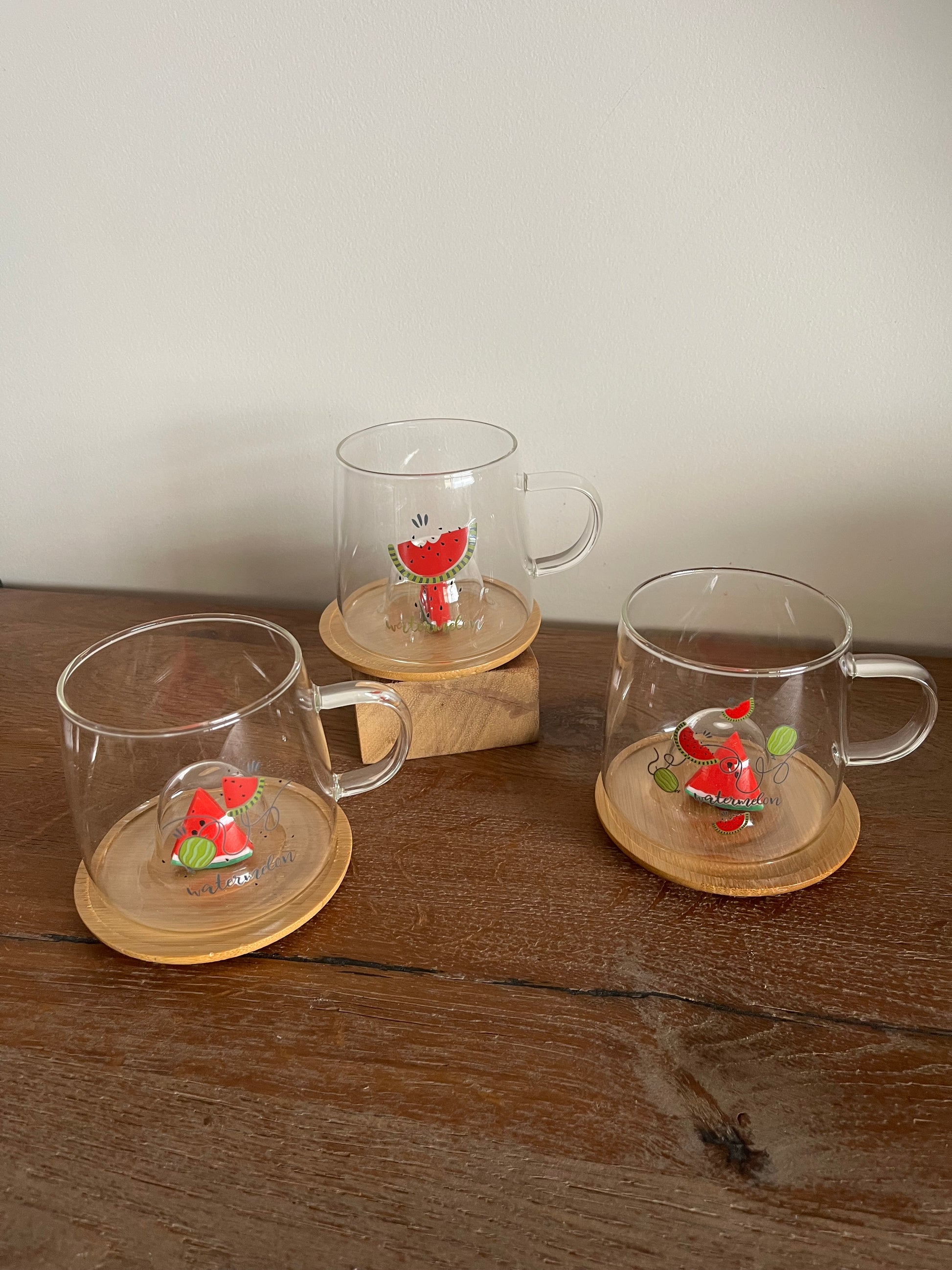 Sip in style with our Watermelon Glass Mug. Keep your drink at the perfect temperature with the included coaster and cover, making it suitable for both hot and cold beverages. Available in 3 designs.